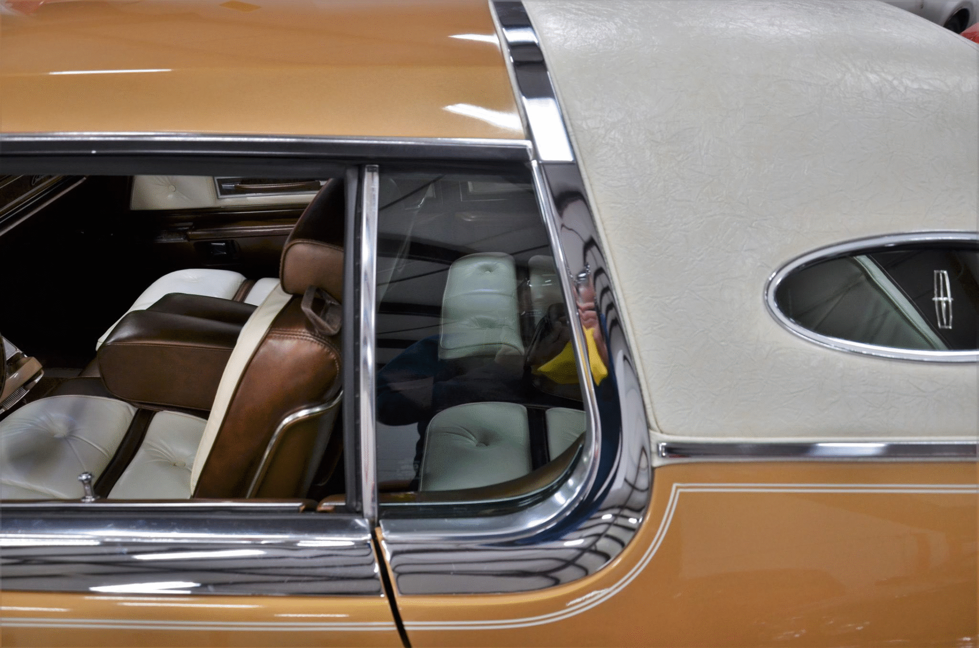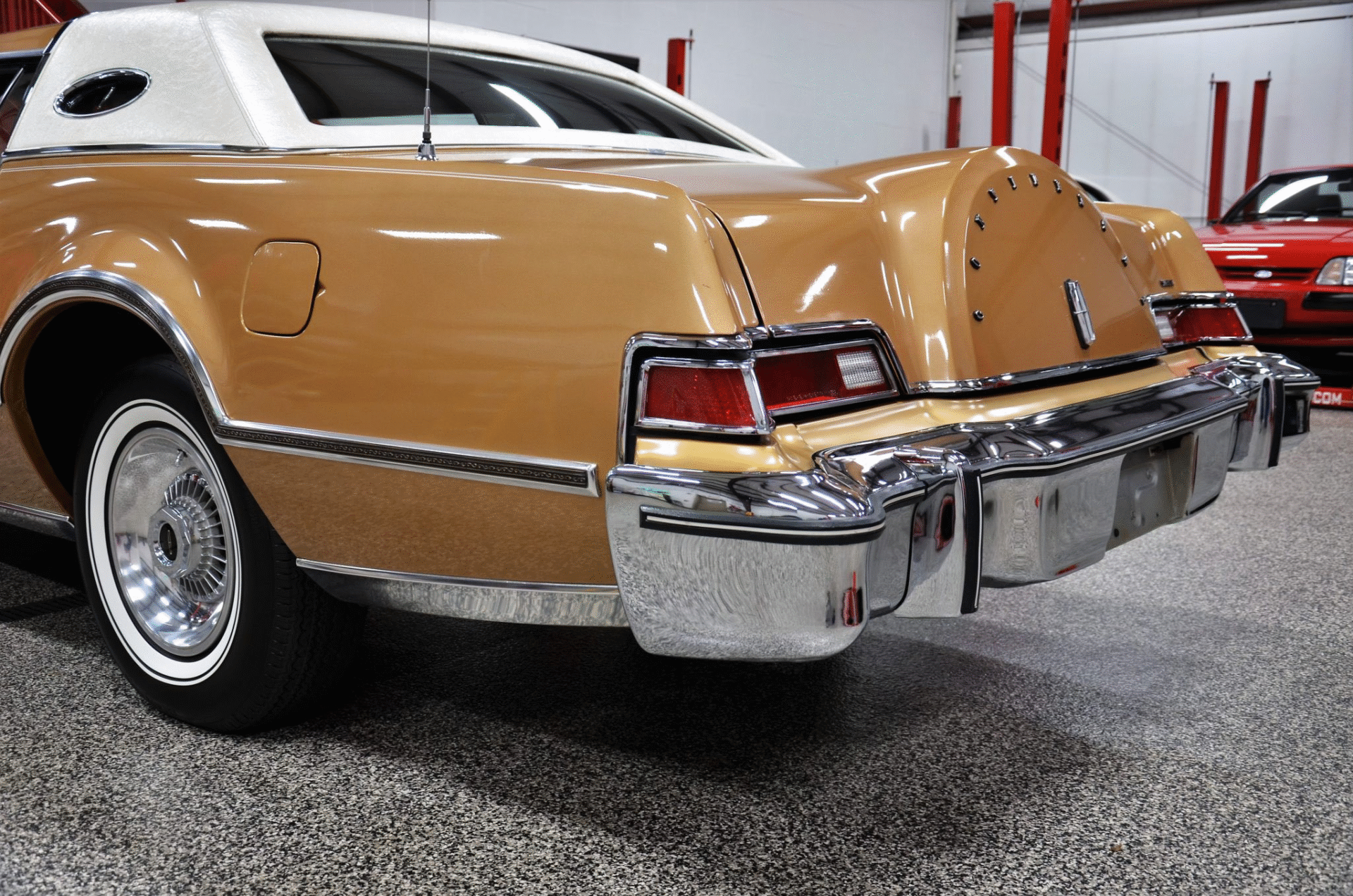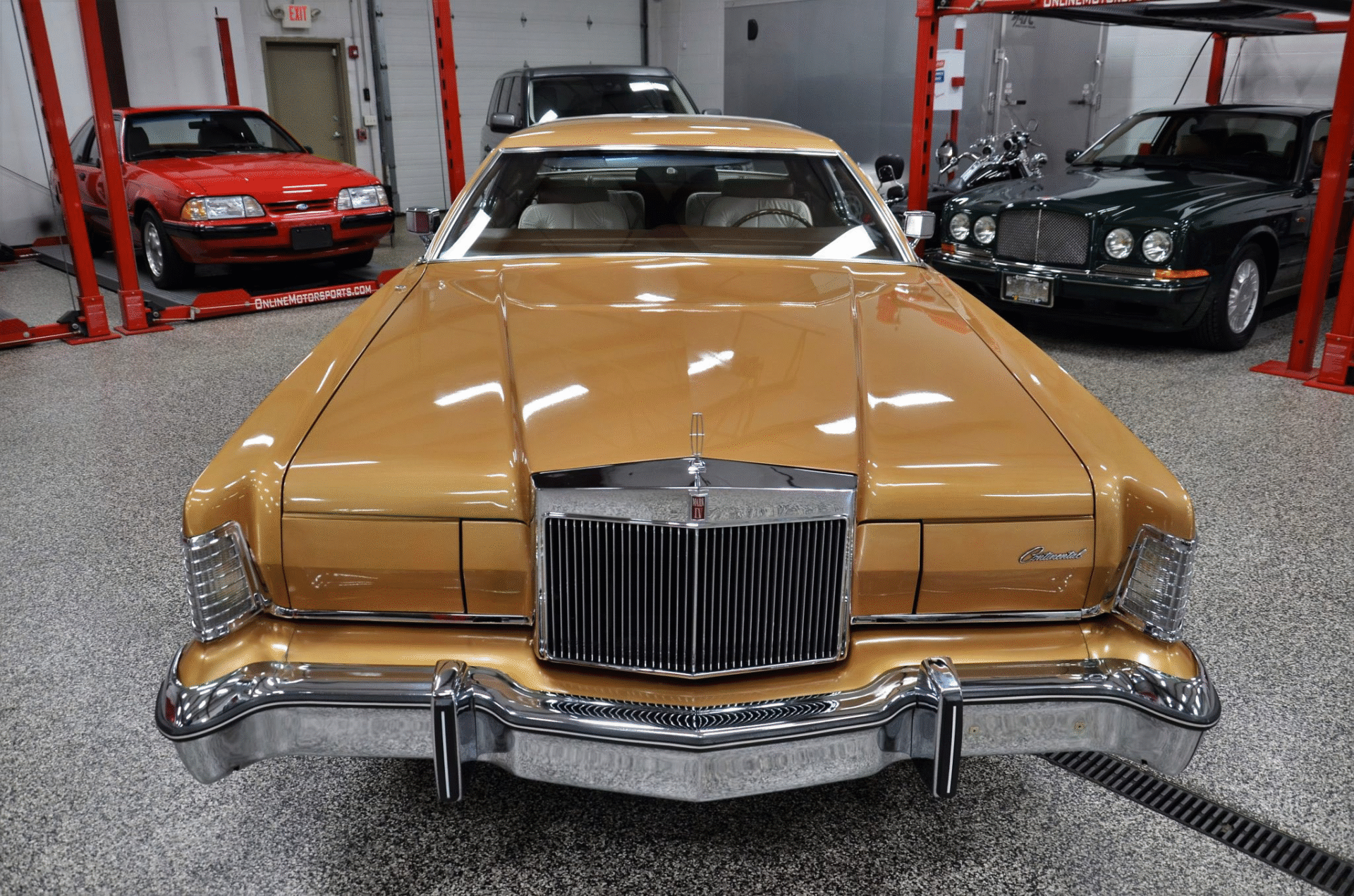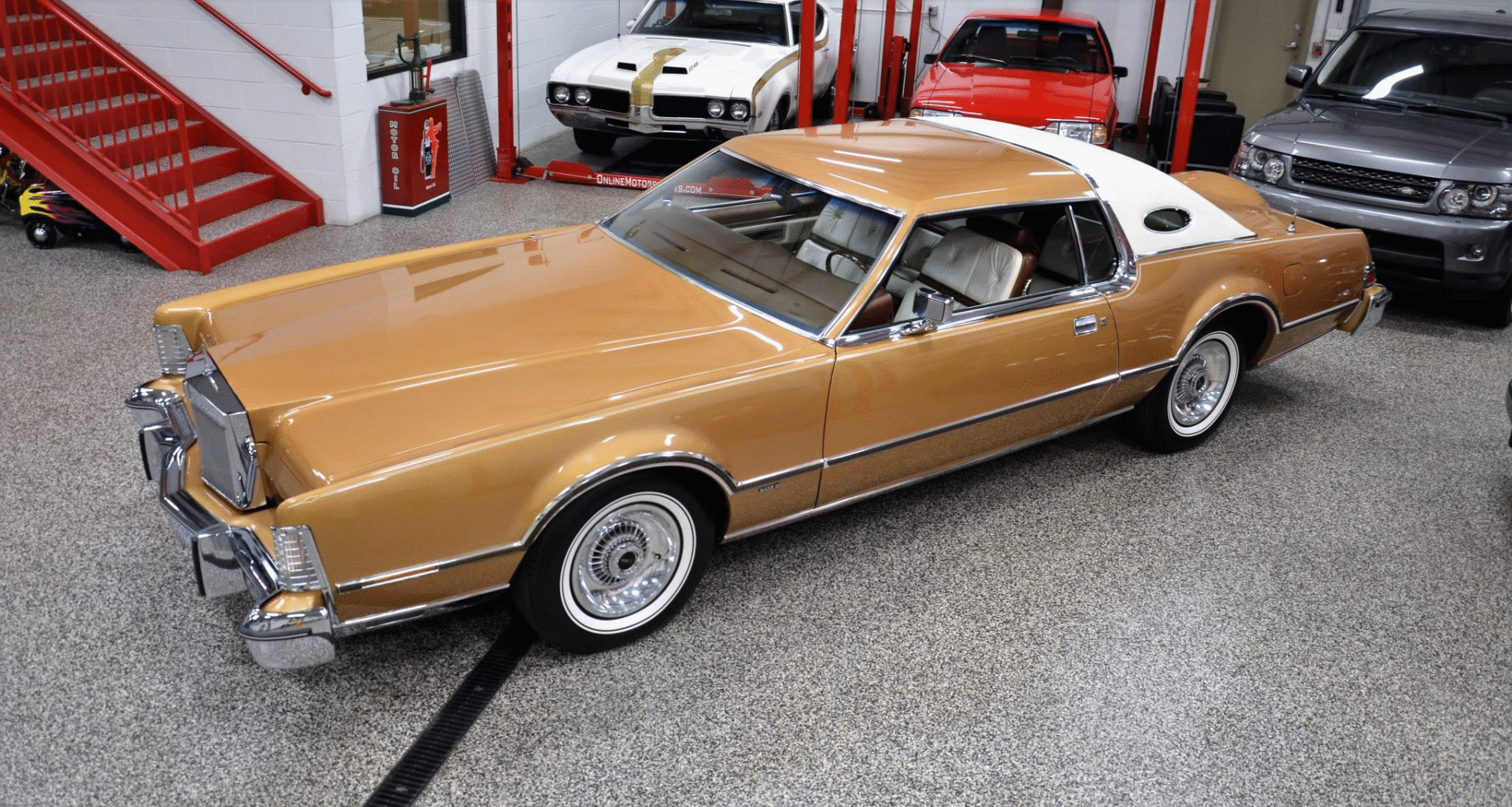 1975 Continental Mark IV finished in extremely rare Gold Diamond Fire Luxury Group (code 54) with White leather upholstery with Brown accents. The Continental Mark IV was a “personal luxury” car that was marketed by the Lincoln division of Ford Motor Company from the 1972 to 1976 model years. The Mark IV was a direct competitor to the 600 lb lighter but yet somehow much more battleship like feeling Cadillac Eldorado. The Lincoln was equipped with a 460 cu. in. V8 that managed a weezing 212hp and 3 speed automatic transmission giving the car stately performance. One can image an unhurried retired dentist arriving at the local country club in this stunning conveyance, without a care in the world for sporty handling or 0-60 times.