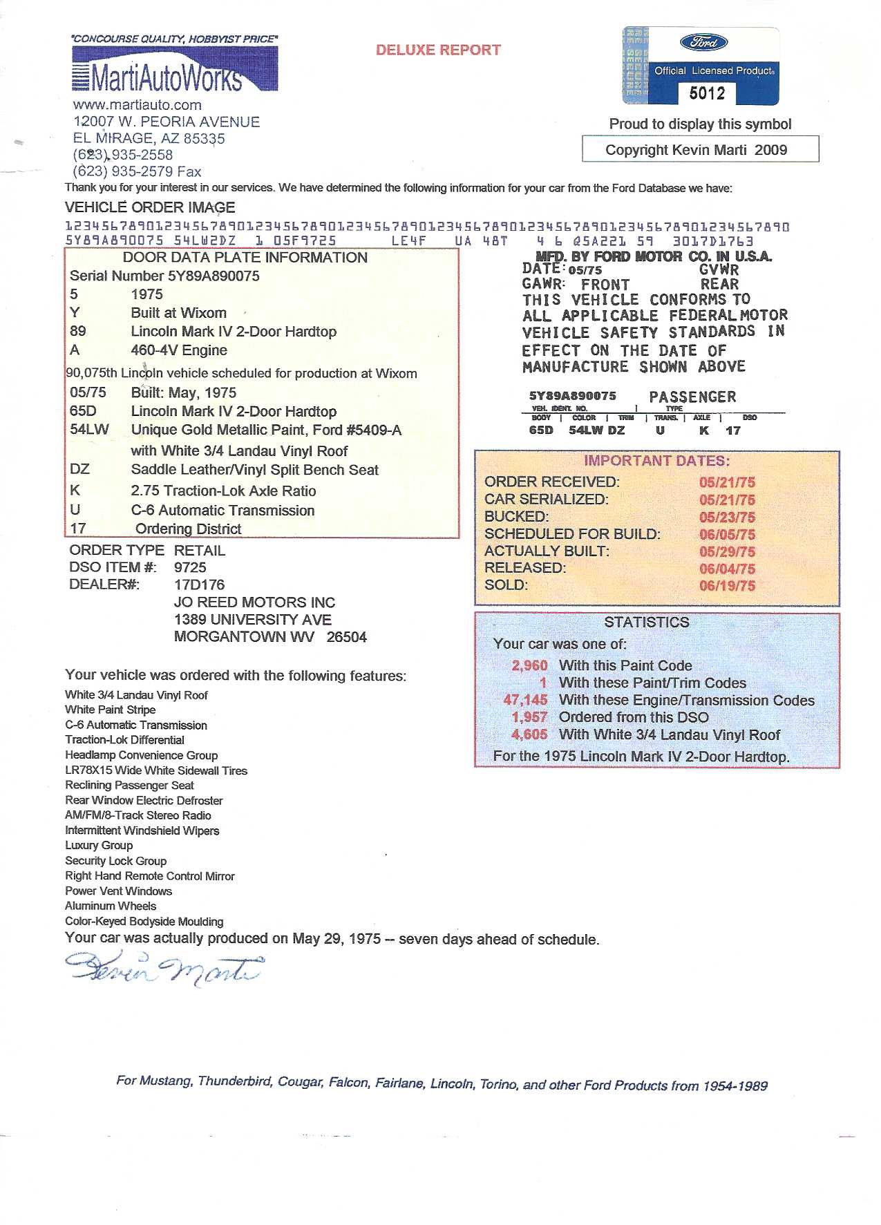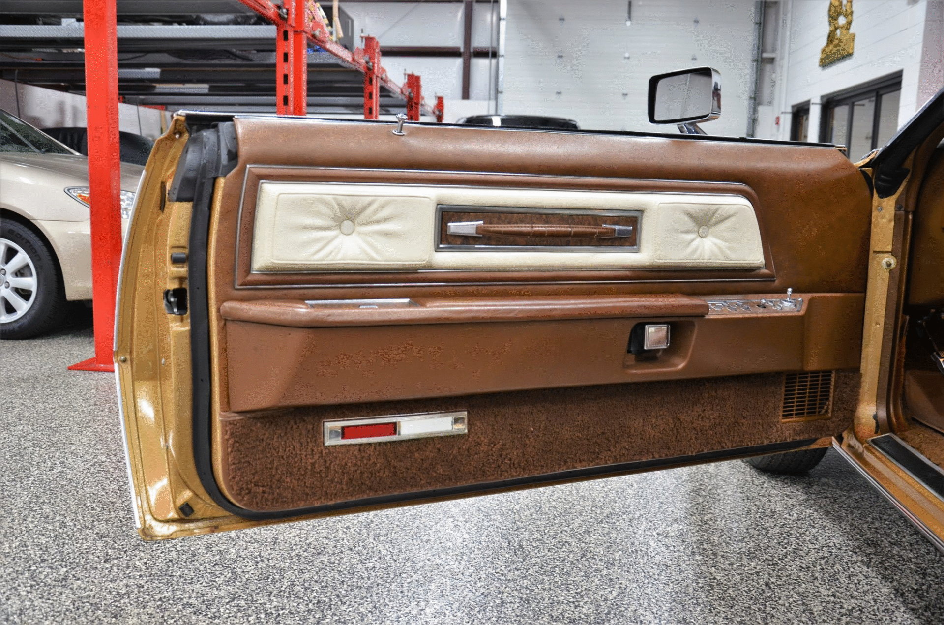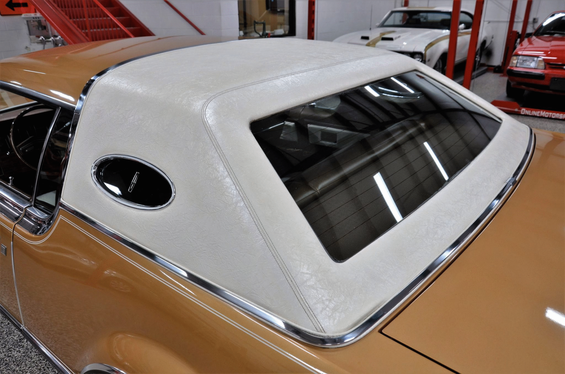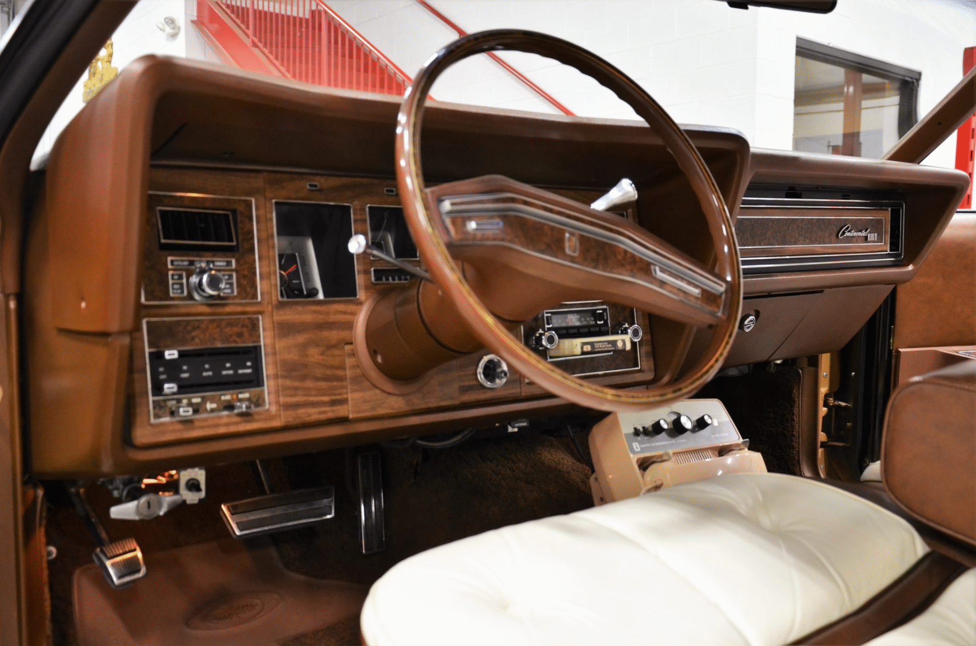 1975 Continental Mark IV finished in extremely rare Gold Diamond Fire Luxury Group (code 54) with White leather upholstery with Brown accents. The Continental Mark IV was a “personal luxury” car that was marketed by the Lincoln division of Ford Motor Company from the 1972 to 1976 model years. The Mark IV was a direct competitor to the 600 lb lighter but yet somehow much more battleship like feeling Cadillac Eldorado. The Lincoln was equipped with a 460 cu. in. V8 that managed a weezing 212hp and 3 speed automatic transmission giving the car stately performance. One can image an unhurried retired dentist arriving at the local country club in this stunning conveyance, without a care in the world for sporty handling or 0-60 times.